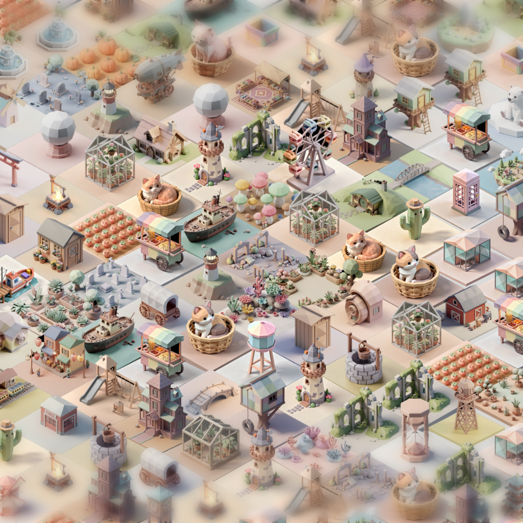 Infinite drifting isometric mural — AI-generated tiles on an endless grid